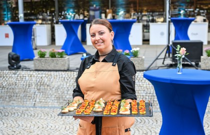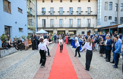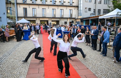 Chvíli po zahájení čekalo hosty překvapení. Několik členů obsluhy najednou zahodilo podnosy a začala neočekávaná taneční show. Šlo samozřejmě o profesionální tanečníky, kteří v přestrojení za servírky a číšníky předvedli parádní flash mob.