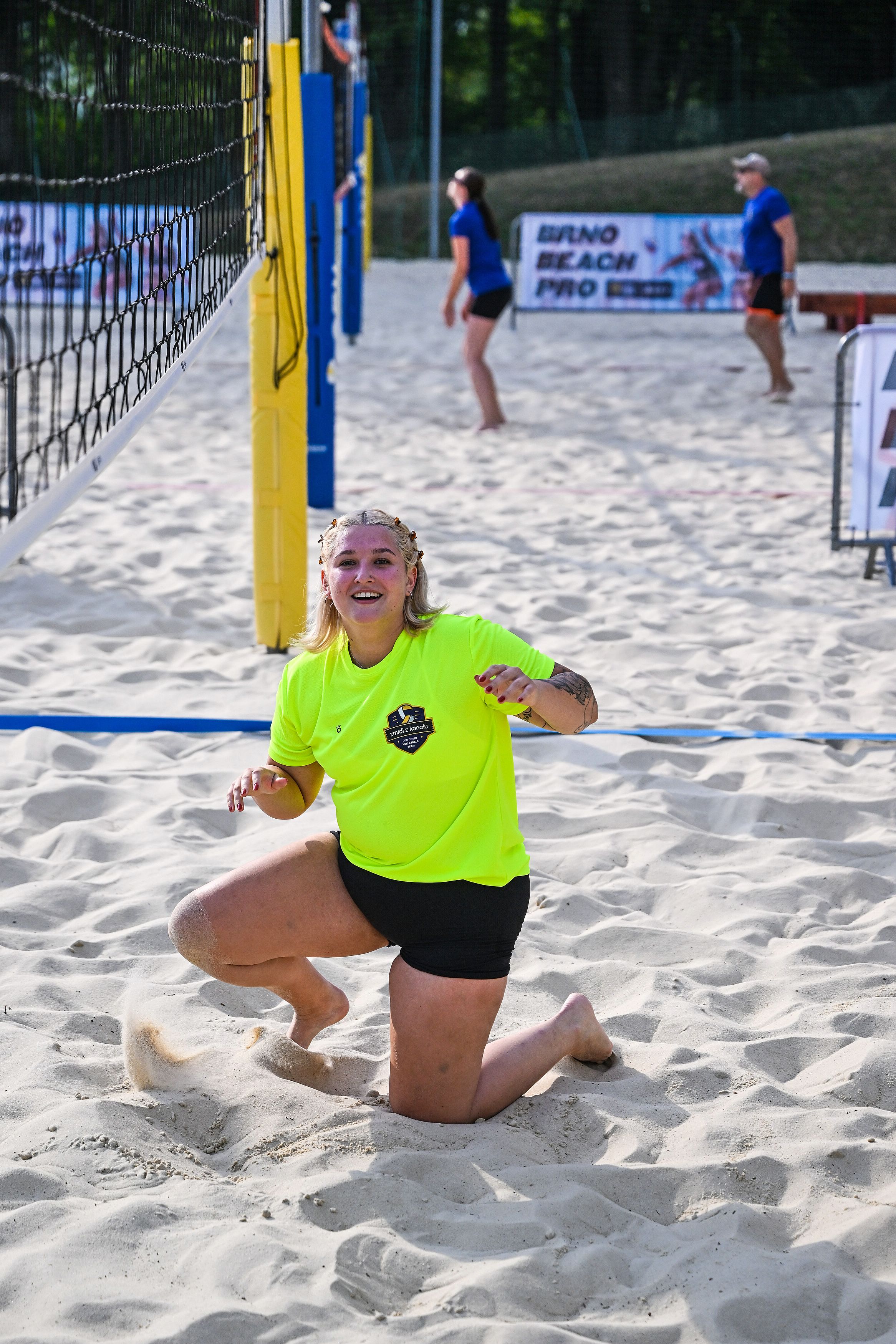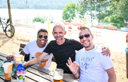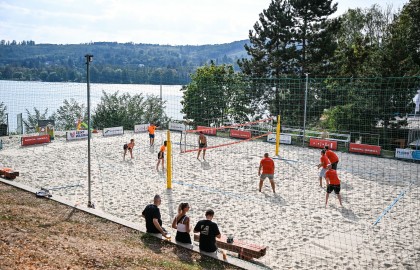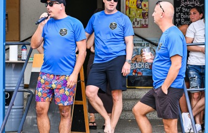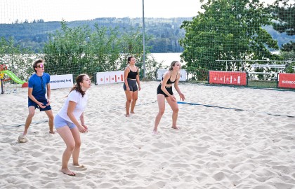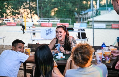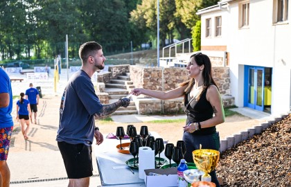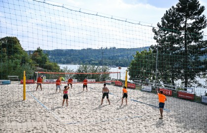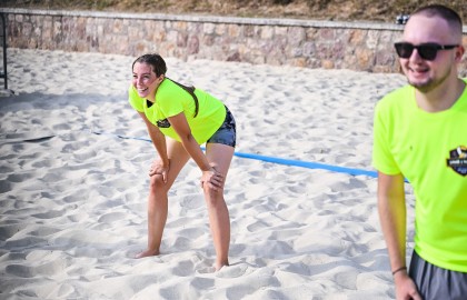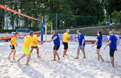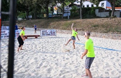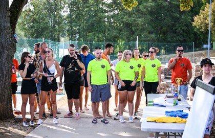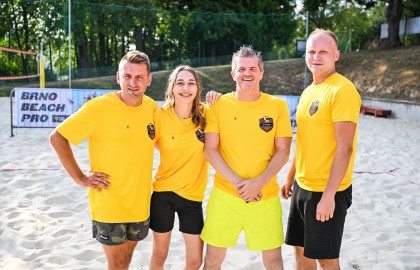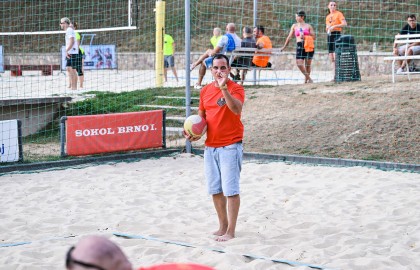 Hned po dojemném úvodním proslovu plného milých slov a chvály se rozezněly repráky s devadesátkovými hity a začal hlavní bod stmelovacího programu – turnaj ve volejbalu. Osm týmů se zajímavými názvy (a ještě zajímavějšími hráči) se pustilo do zápolení o to, kdo se bude v písku válet nejméně. Ukázalo se, že pohybové aktivity mají v malíčku ti nejmladší. Po nepříliš dlouhém souboji totiž nakonec nad hlavu pozvedli vítězný pohár brigádníci z bufetu Městského divadla Brno.