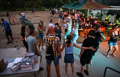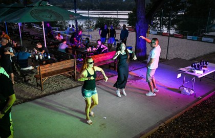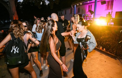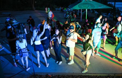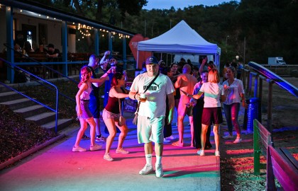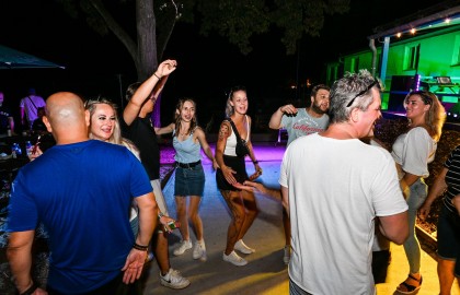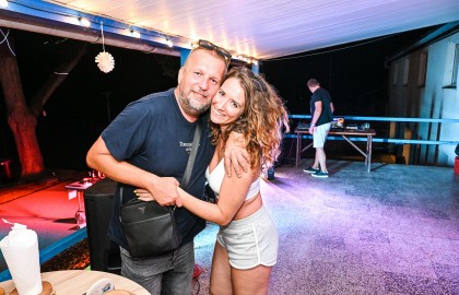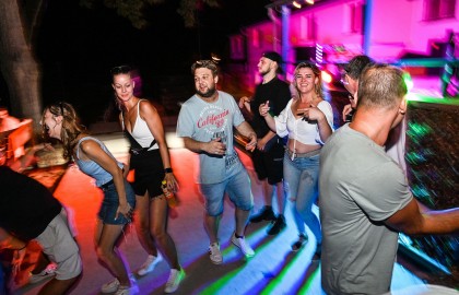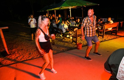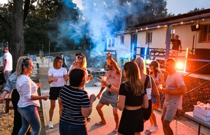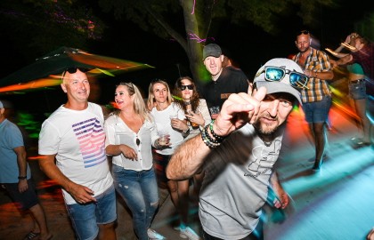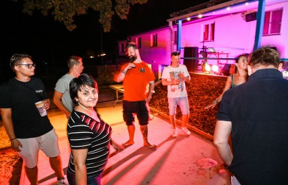 V tu samou chvíli na place před repráky odstartovala diskotéka. S každým prázdným sudem Pilsneru atmosféra nabývala na obrátkách. Když se setmělo, začala nefalšovaná rave party plná dunících beatů a DJova odvázaného zpěvu, díky kterému budeme na náš teambuilding ještě dlouho a živě vzpomínat.