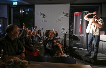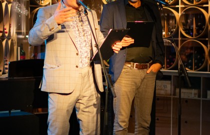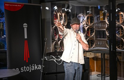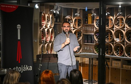 Následoval hlavní bod programu, vystoupení stand-up komiků Na stojáka! v silné sestavě Karel Hynek, Tigran Hovakimyan a Brian Lennon. Jejich vystoupení plné zamotaných historek, výzev života v České republice a každodenních trampot sklidilo velký úspěch a Winebar se tak poprvé a rozhodně ne naposled rozezněl smíchem a potleskem. Do budoucna totiž plánujeme pořádat hudební a zábavní vystoupení pravidelně.
