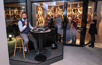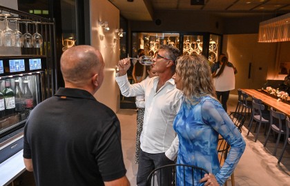 “Líbí se mi ten krásně čistý a vzdušný prostor,” doplnil Dušan Vitázek. Samoobslužný systém Degustomat ho také zaujal. “I pro mě, který si dá víno spíše sporadicky, je tohle skvělý koncept, protože můžu ochutnat opravdu jen trochu vína bez nutnosti kupovat celou lahev.”