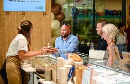 I proto na slavnostním otevření nemohla chybět slavná cukrářka Iveta Fabešová, autorka několika kuchařek a majitelka jedné z nejlepších pražských kaváren & cukráren sídlící ve Werichově vile. Celou akci živě vysílalo Radio Krokodýl. Těšit jste se mohli na welcome drink, ochutnávku našich dezertů, domácí zmrzliny a autogramiádu Ivety Fabešové.